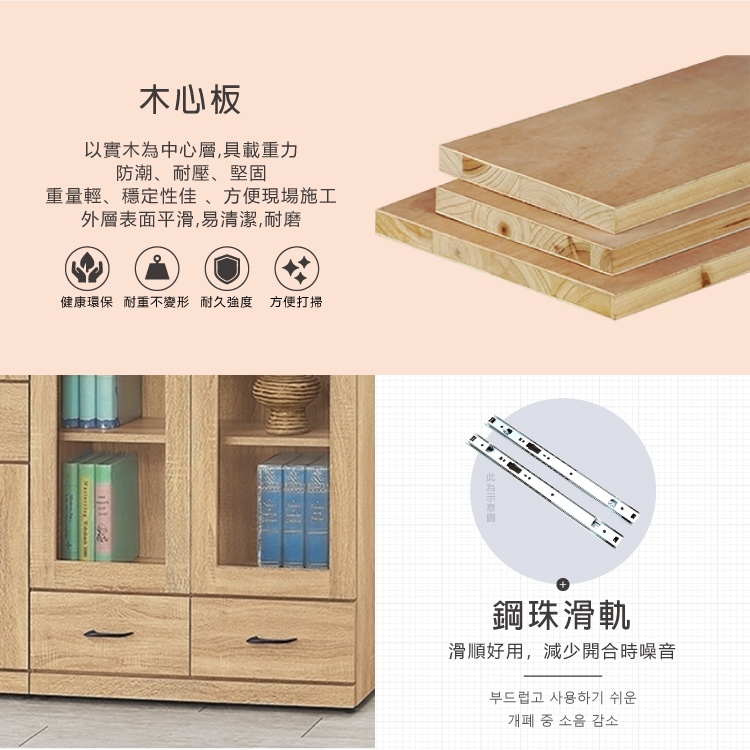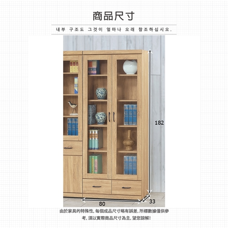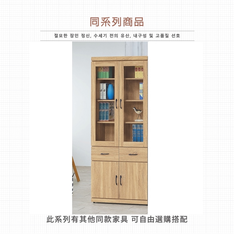 AS-伊文妮兩抽雙門原切橡木色書櫃-80x33x182cm