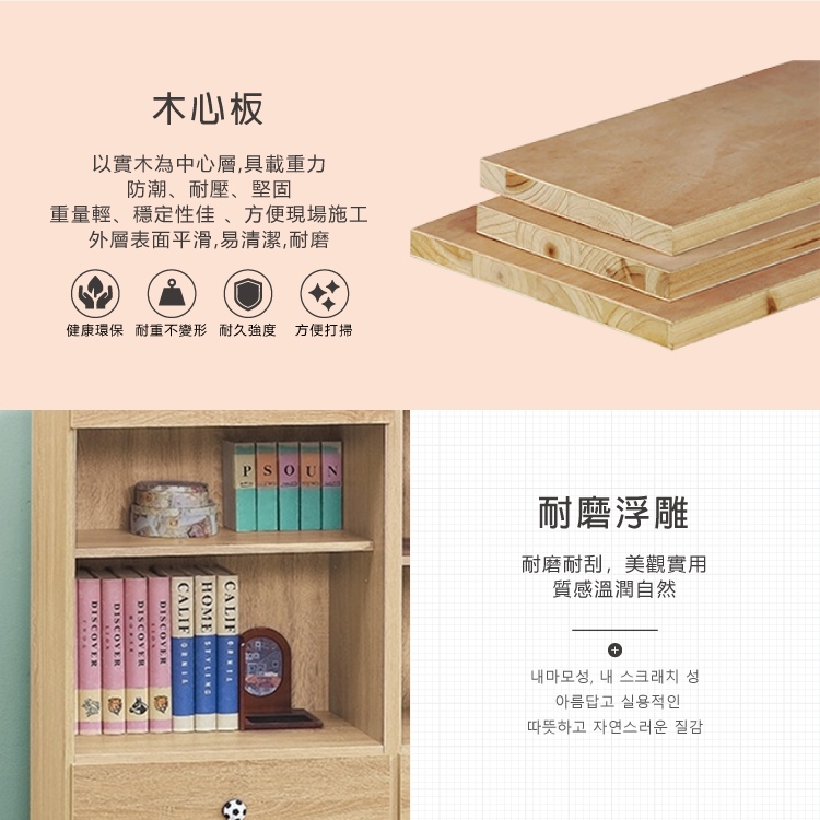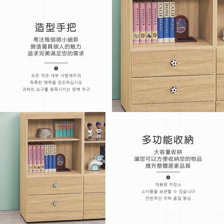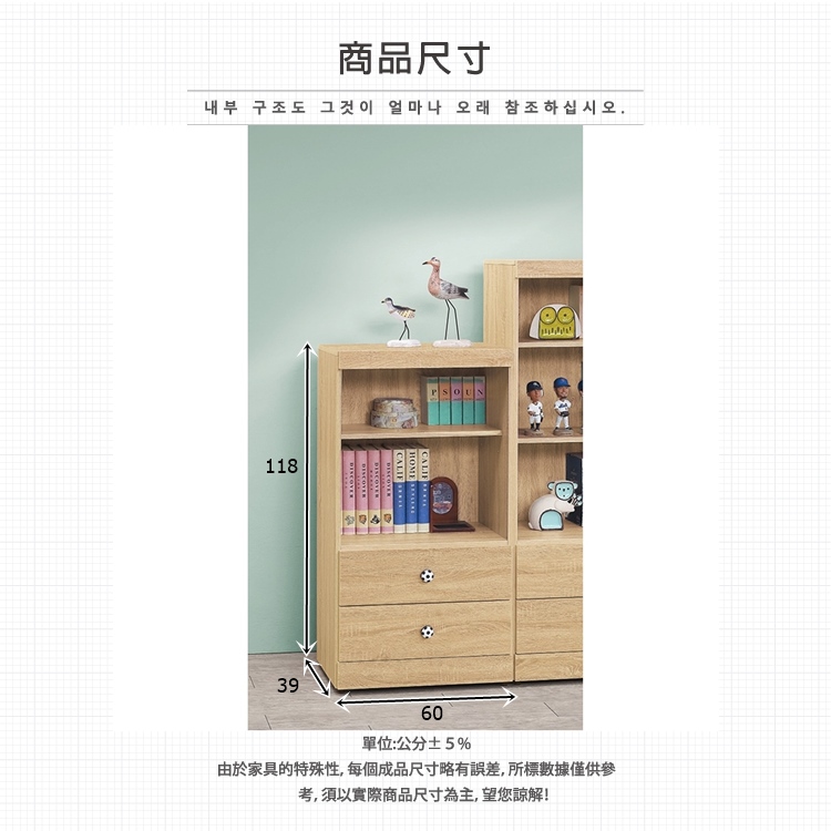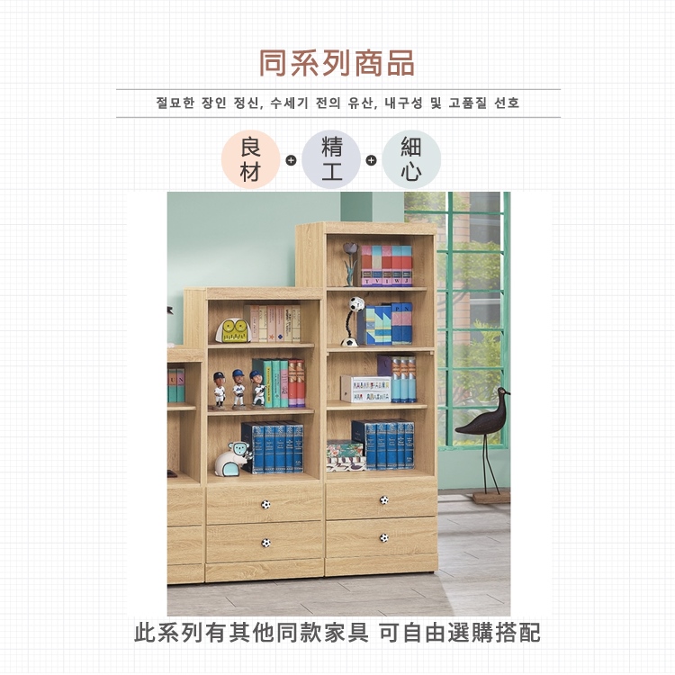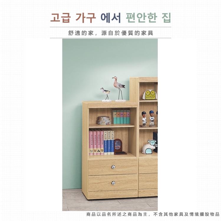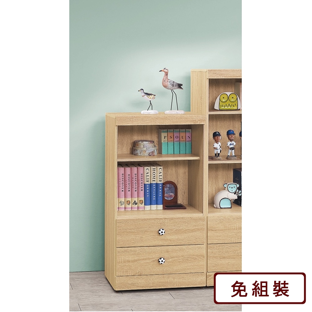 AS-凱夫兩抽二層原切橡木色4尺高書櫃-60x39x118cm