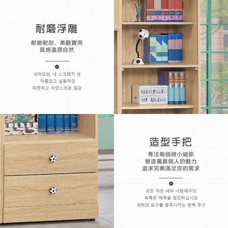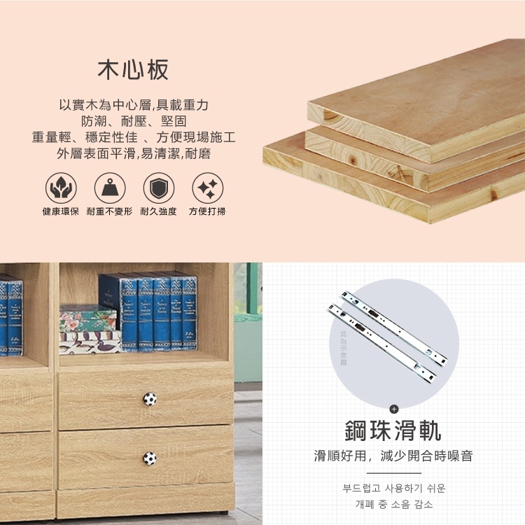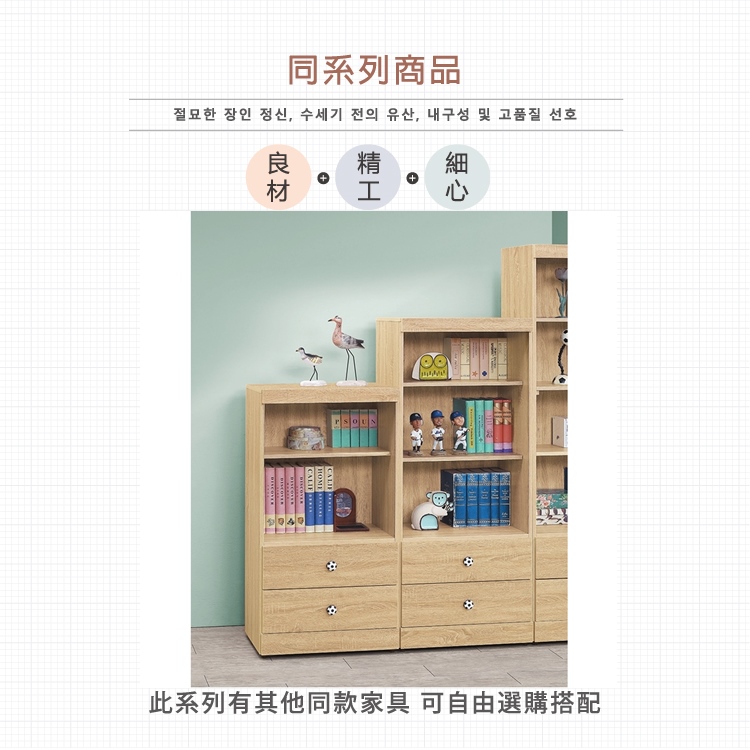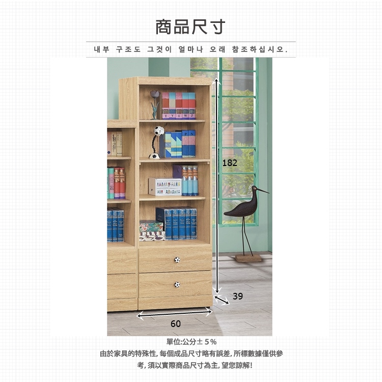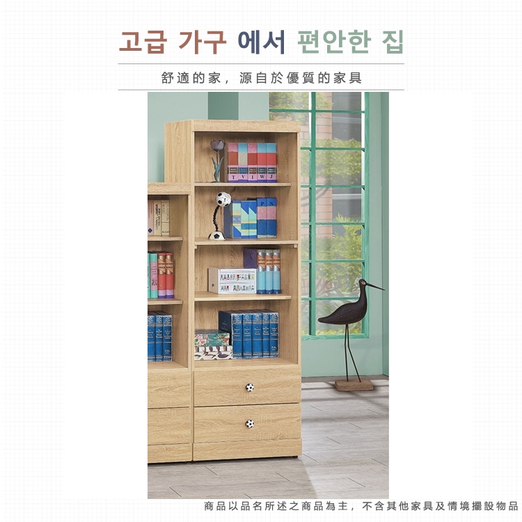 AS-凱夫兩抽四層原切橡木色6尺高書櫃-60x39x182cm
