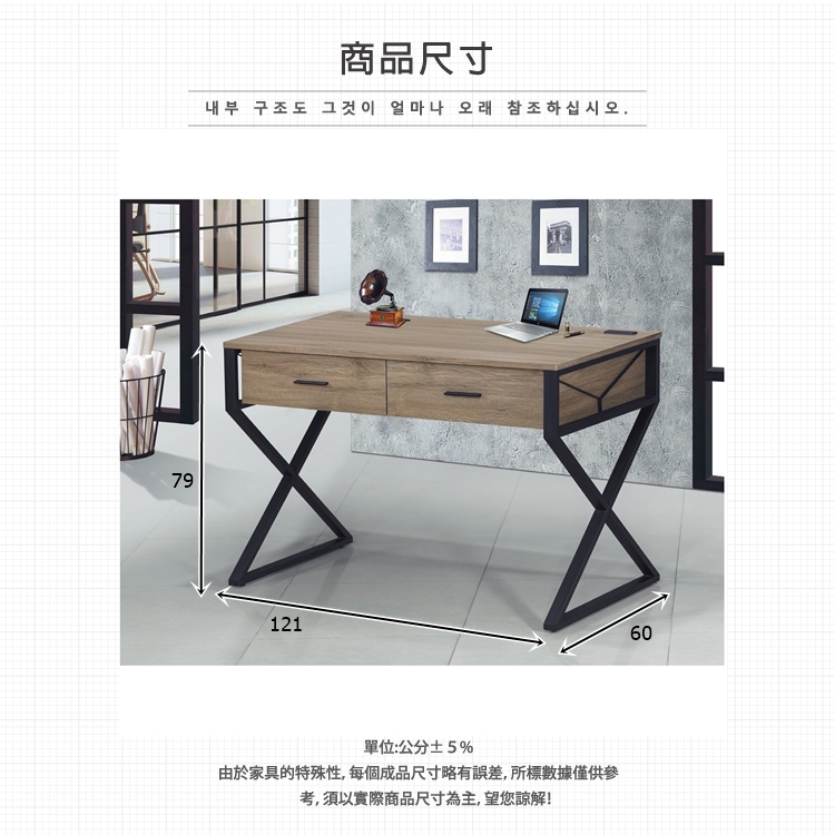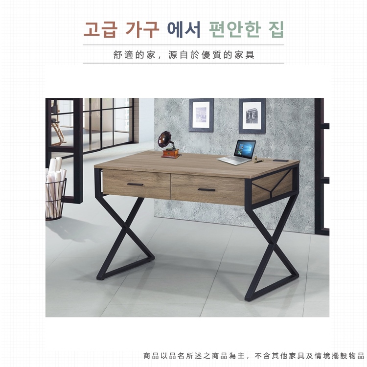 AS-喬治4尺灰橡耐磨插座鐵架書桌-121x60x79cm(五色可選)