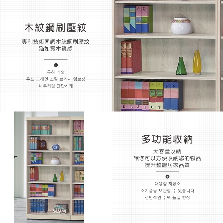 AS-尤妮絲3×6尺白栓木浮雕開放書櫃-80x33x180Hcm