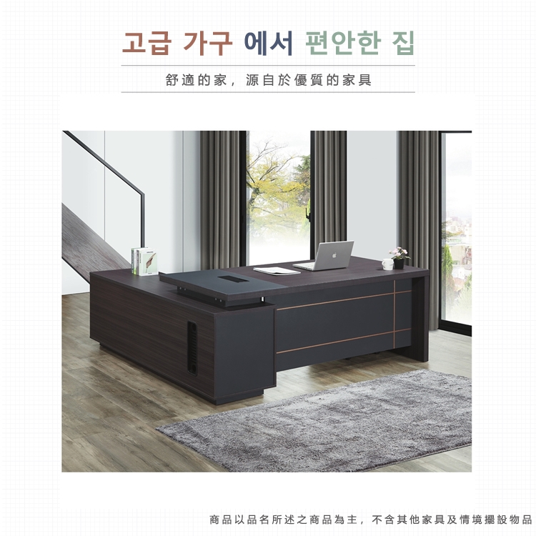 AS-埃羅爾胡桃配色L型辦公桌+側櫃-總寬:233x90x76cm 桌面:215x90x76cm 側櫃190x60x60cm