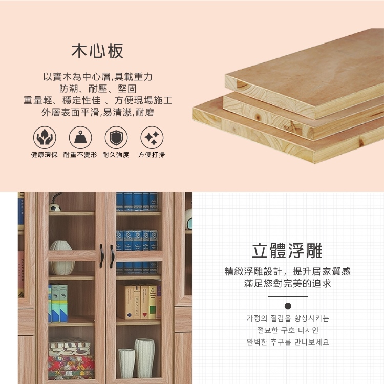 AS-莉拉四門兩抽浮雕原切橡木色書櫃-80x33x180cm(兩色可選)