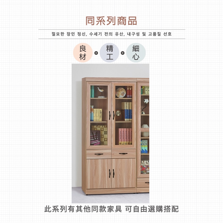 AS-莉拉四門兩抽白栓木色書櫃-80x33x180cm