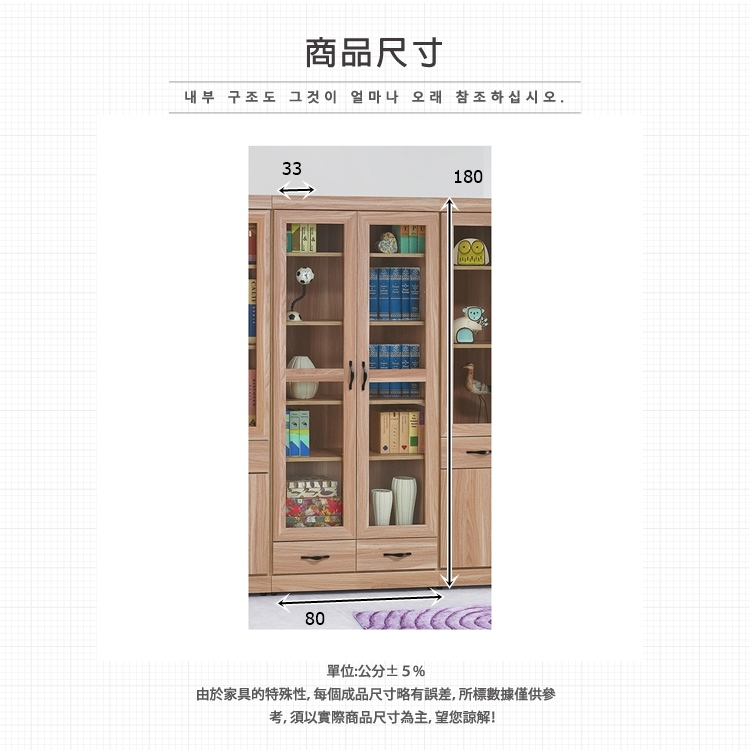 AS-莉拉兩門兩抽浮雕原切橡木色書櫃-80x33x180cm